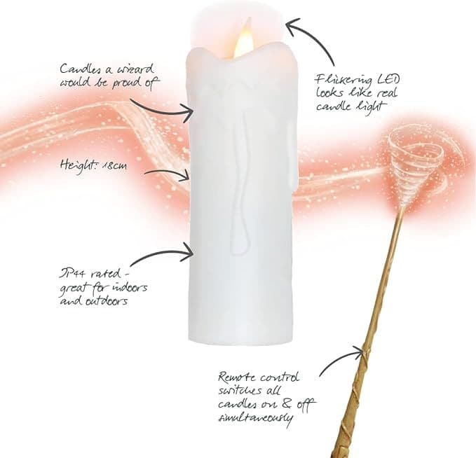 These battery powered lights consist of 5 LED candles suspended by a clear cable which gives the illusion of them floating in the air, just like in the Harry potter films.