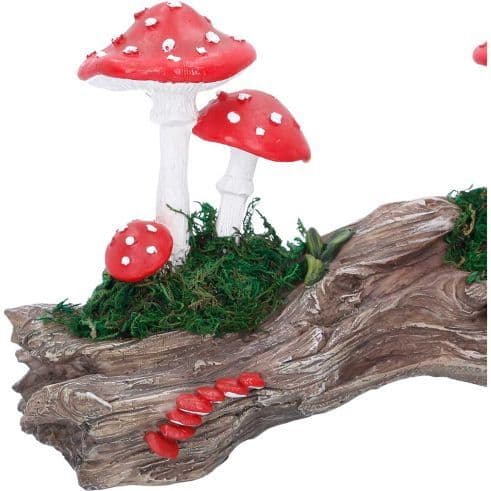 Featuring multiple vibrantly coloured toadstools sprouting from a textured trunk, complete with grassy details, cast in high-quality resin and hand-painted to bring out every natural detail.