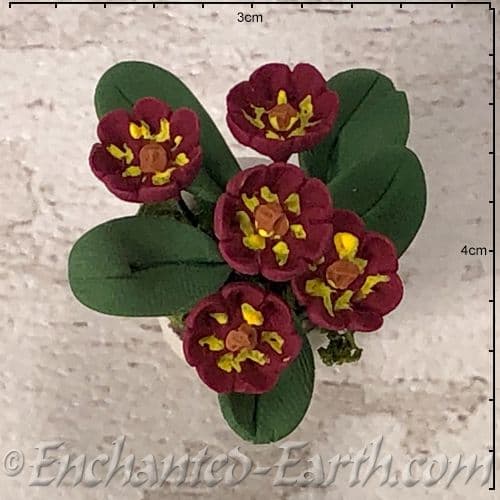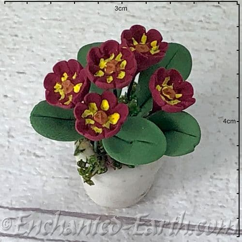 Gardeners World Handmade Miniatures - White Terracotta Pot with Deep Burgundy Flowers - 3cm