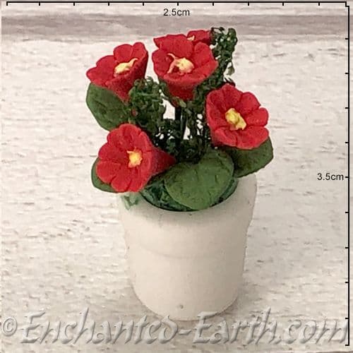 Gardeners World Handmade Miniatures - White Terracotta Pot with Deep Red Flowers - 3cm