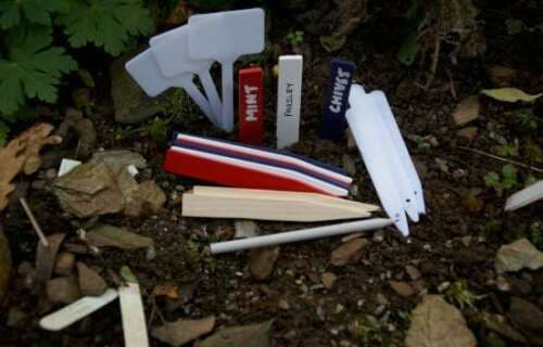 3 assorted wooden and plastic labels together with that all important pencil.