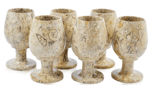 Our stone goblets show the remains of fossil shell, fish and corals from around 4 million years ago.